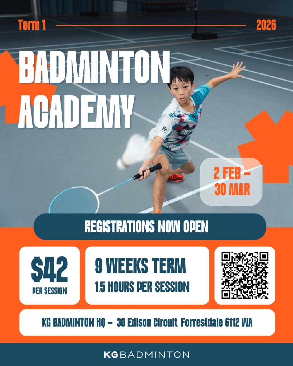 Join us this Term 1 for an action-packed badminton program designed to help your child reach their full potential! Whether they’re looking for high-intensity training or simply want to grow their love for the sport, KG has something for everyone. Enrol today!
